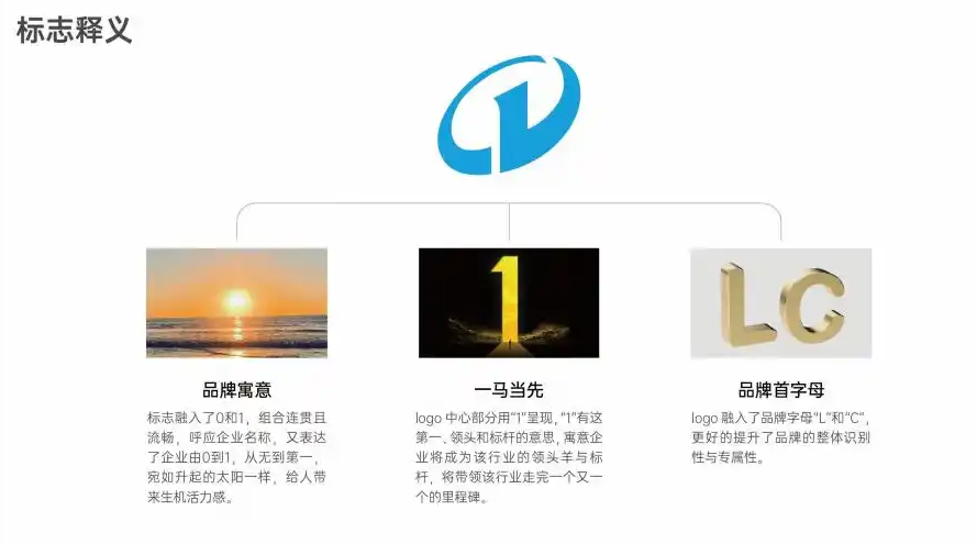 "1"寓意企業(yè)蒸蒸日上,在未來發(fā)展中成為龍頭企業(yè)樹立行業(yè)標(biāo)桿。logo 中心部分用"1"呈現(xiàn),"1"有這第一、領(lǐng)頭和標(biāo)桿的意思,寓意企業(yè)將成為該行業(yè)的領(lǐng)頭羊與標(biāo)桿,將帶領(lǐng)該行業(yè)走完一個(gè)又一個(gè)的里程碑。
